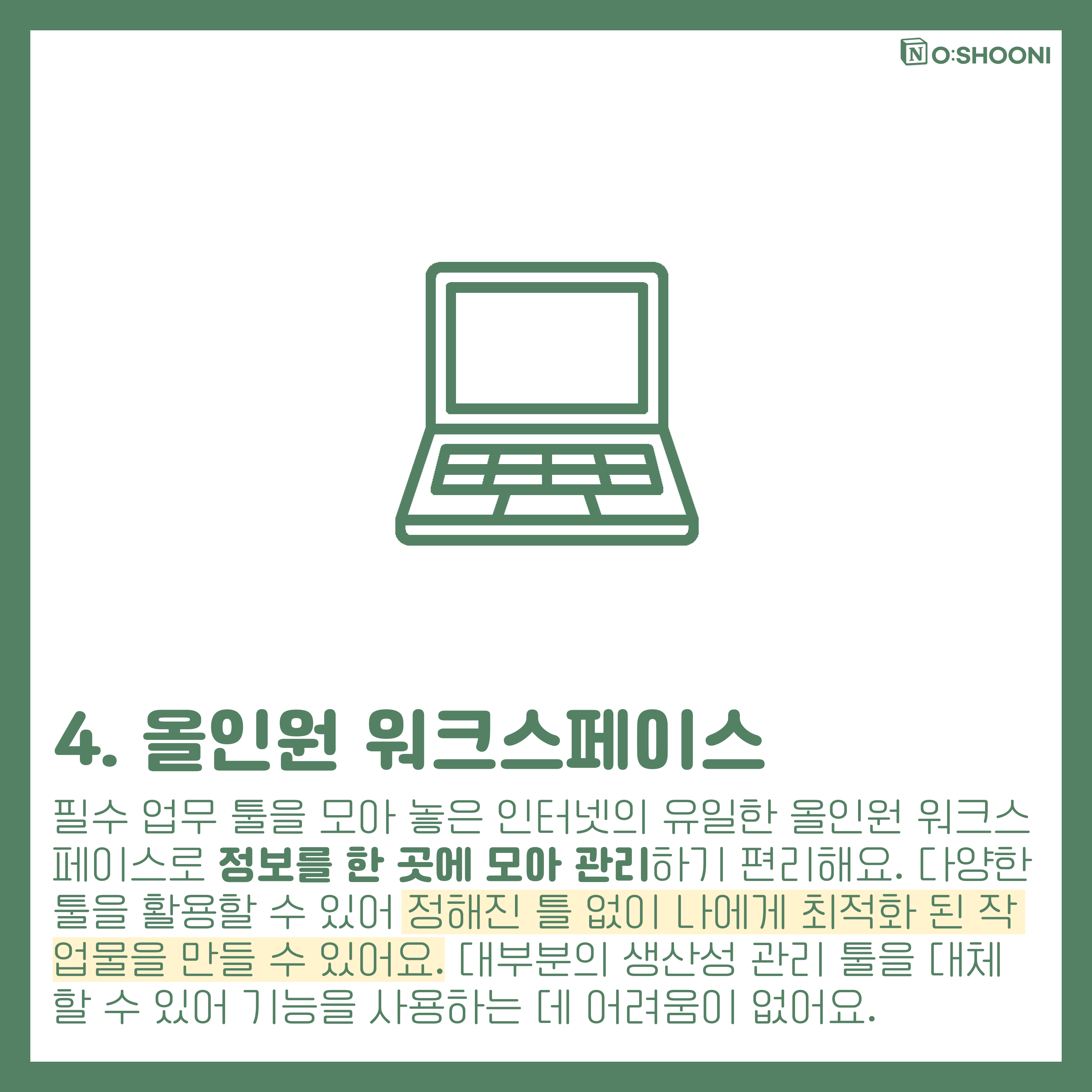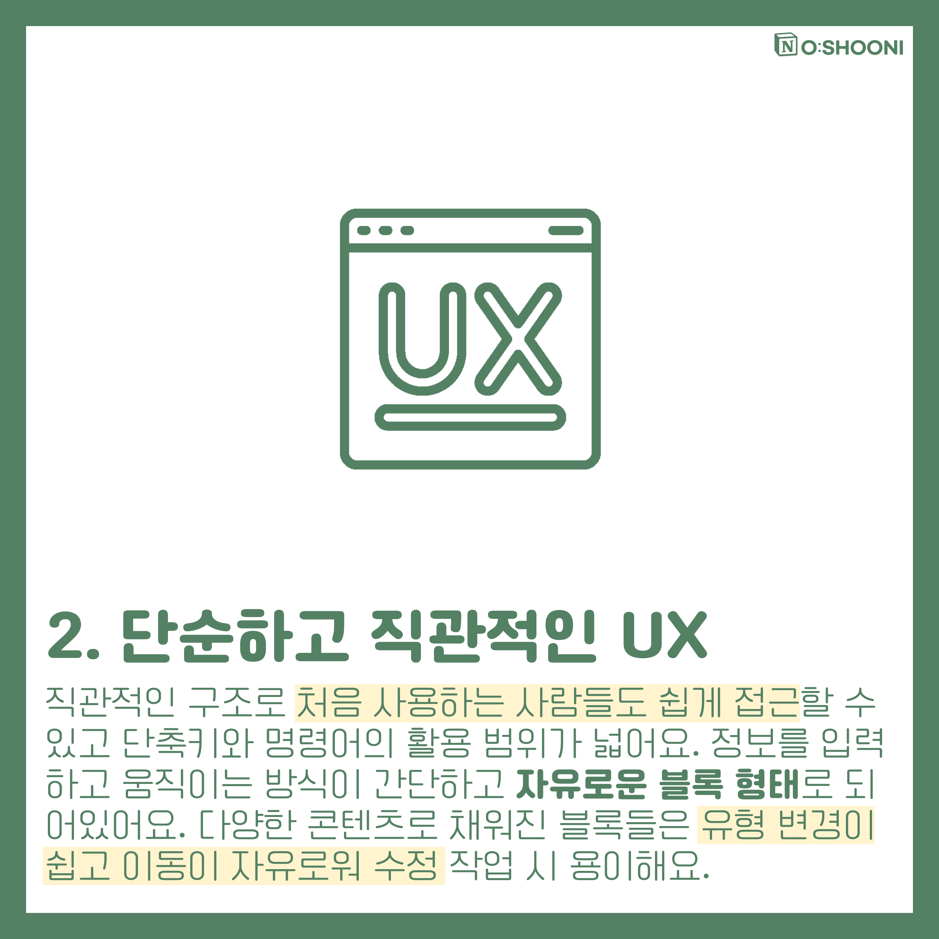 인스타그램에서는 간단하고 쉽게 알려주는 콘텐츠들을 블로그에서는 좀 더 자세하게 설명하고 있어. 물론 둘다 재미보장.😎 노션의 다양한 기능들을 알려주는 콘텐츠는 물론, 노슈니가 직접 만든 효율적인 템플릿과 유익함 듬뿍 담은 경험 페이지들도 제공하고 있어! 앞으로 더 대단하고 멋진 일들을 슈크림들이랑 함께 할 예정이라구-❤️